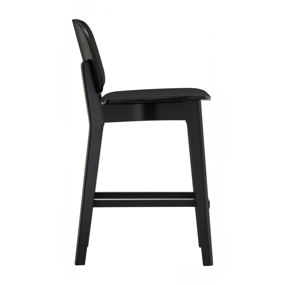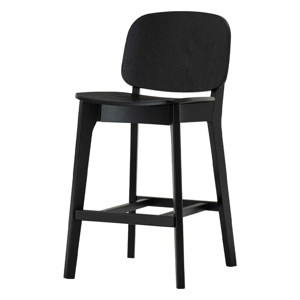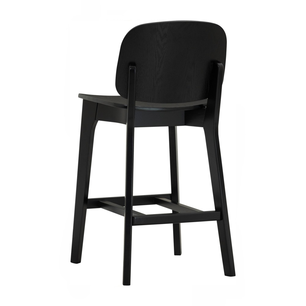 The CORAL bar chair is crafted from black oak with a bentwood back and ash veneer seat, giving it a sleek, modern edge.