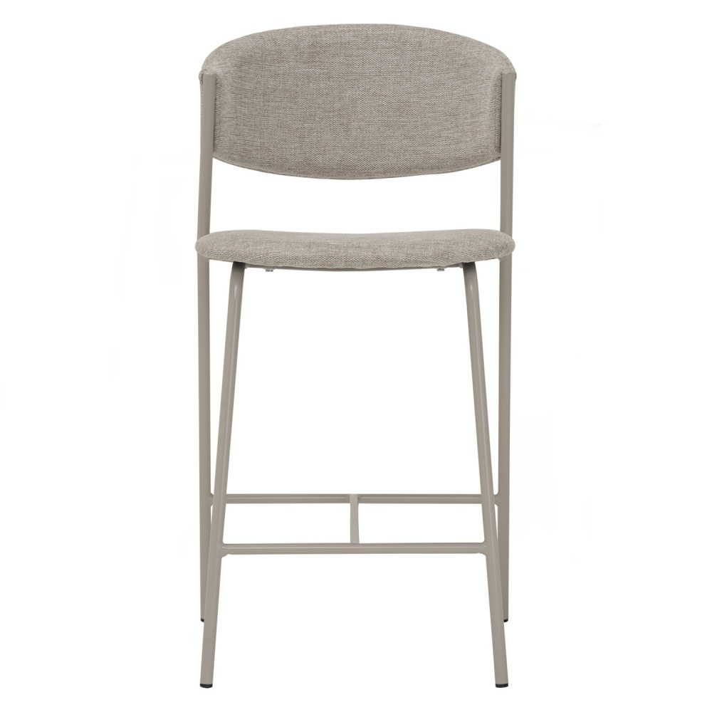 The KERY bar stool combines matte beige metal legs with a soft cushioned seat in beige Brego fabric.