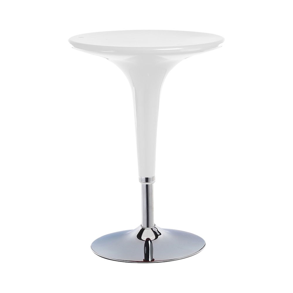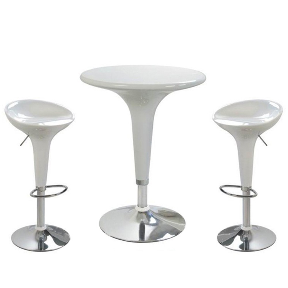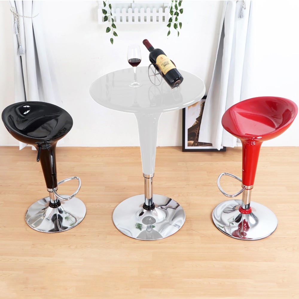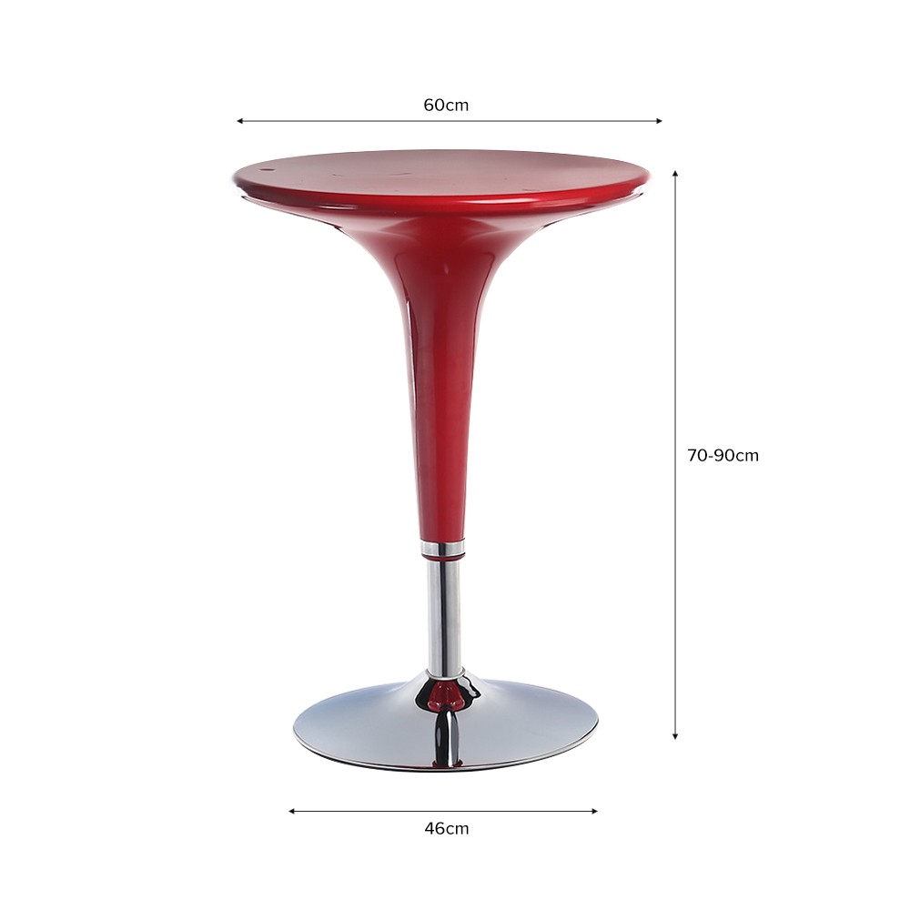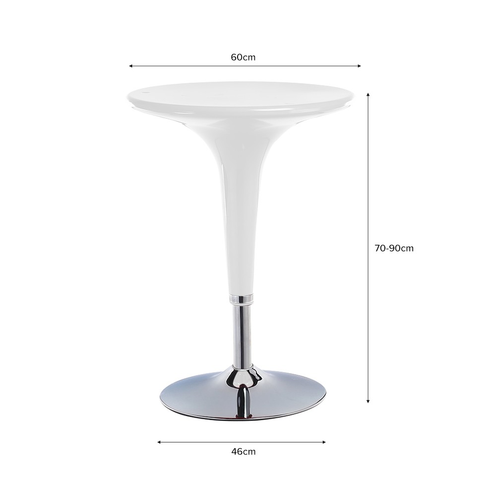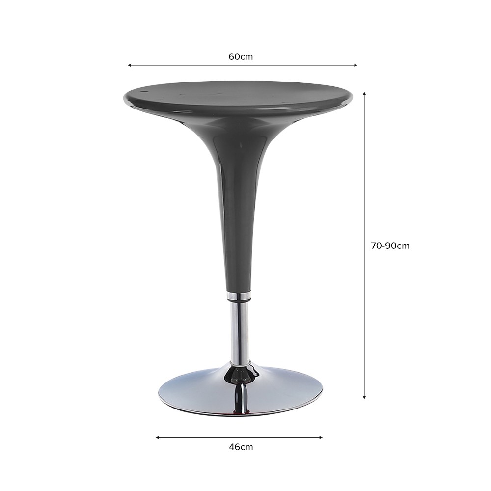 A gleaming and hardy ABS table top is mounted atop a gas lift mechanism for easy adjustment of seat height,
